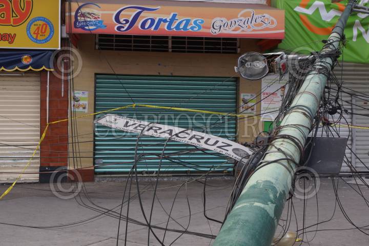 CIUDAD DE MÉXICO 20SEPTIEMBRE2017.- En la esquina de Avenida Chapulpetec y Veracruz en la colonia condesa se observa un poste que cayó debido al sismo que azotó varios estados de la república el día de ayer. FOTO: VIRIDIANA SANDOVAL /CUARTOSCURO.COM