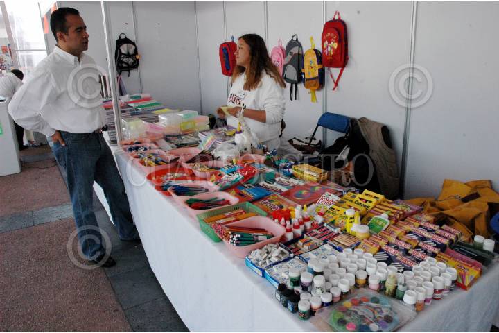 MEXICO, D.F. 01AGOSTO2005.- Estos son algúnos de los establecimintos que forman el ¨tianguis escolar¨, en la explanada de la delegación Miguel Hidalgo. FOTO: Osvaldo Aguilar/CUARTOSCURO.COM