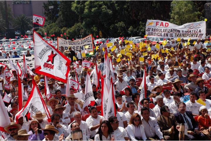 MEXICO, D.F. 01AGOSTO2005.- Cientos de trabajadores de diferentes rutas de transporte, se reunirón en el monumento a la Revolución, para oir la propuesta de el precandidato perredista. FOTO: Osvaldo Aguilar/CUARTOSCURO.COM