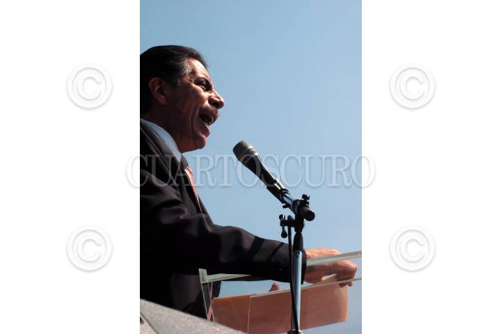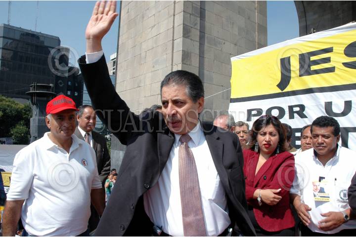 MEXICO, D.F. 01AGOSTO2005.- Jesús Ortega, precandidato del PRD a la jefatura del Gobierno del Distrito Federal, dió a conocer su propueta de transporte, en el monumento a la Revolución. FOTO: Osvaldo Aguilar/CUARTOSCURO.COM