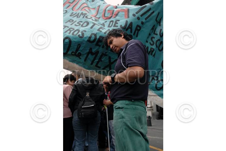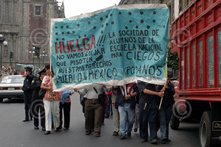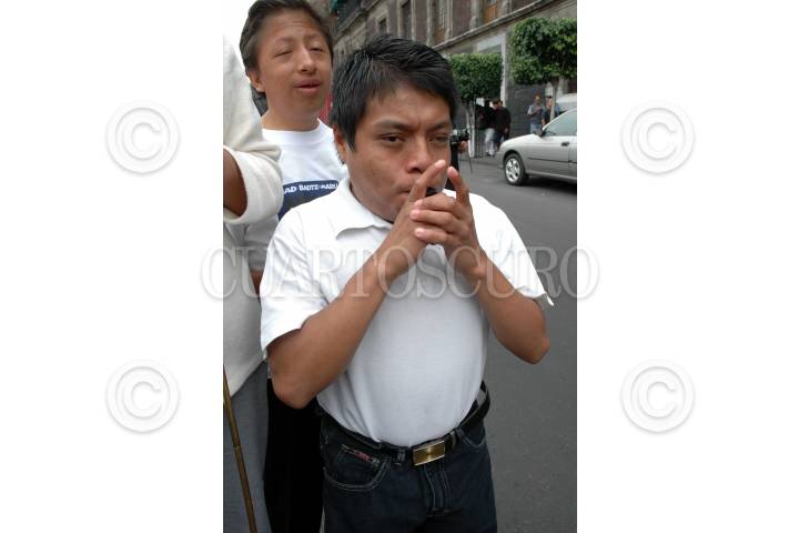 MEXICO D.F. 02AGOSTO2005.- Decenas de estudiantes de la escuela nacional para ciegos se manifestaron a las afueras de la Secretaria de Educación Pública (SEP). Los manifestantes piden no sea cerrado su centro educativo. FOTO: Osvaldo Aguilar/CUARTOSCURO.COM