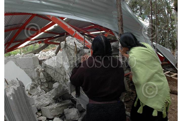 CHAMULA, CHIAPAS,30JULIO2007.-Catolicos tradicionales y evangelicos de la comunidad Nichnamtic del municipio de Chamula acordaron un pacto de tolerancia y no agresiòn, en tanto que el templo derribado por los catolicos sera reconstruido por la propia comunidad. FOTO:OSCAR LEON/CUARTOSCURO.COM