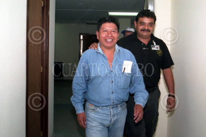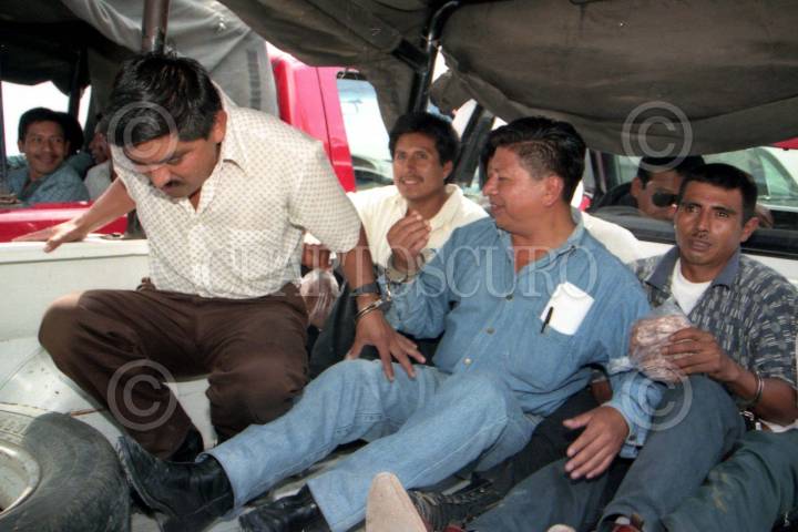 Chiapas, 22FEBRERO2005.- Samuel Sánchez Sánchez (camisa azul), ex-diputado priista de la región norte de Chiapas, líder del grupo paramilitar Paz y Justicia, en imagen de archivo, Octubre del 200 cuando fuera detenido por la PGR acusado de una agresión a una de las bases de apoyo del EZLN. FOTO: Oscar León/CUARTOSCURO.COM