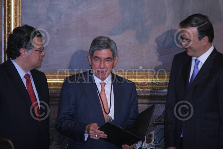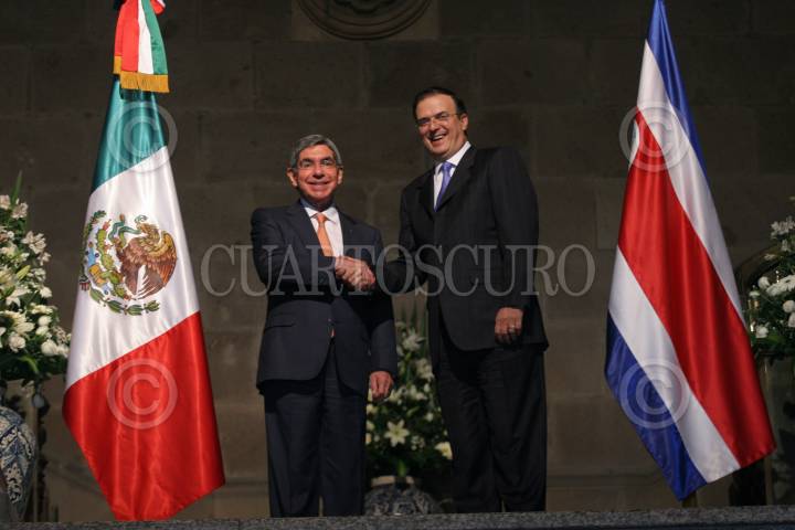 MÉXICO, D.F., 27MARZO2009.- El Jefe de Gobierno, Marcelo Ebrard Casaubon entregó las llaves de la Ciudad, Medalla, Pergamino y declara huésped distinguido al presidente de Costa Rica, Oscar Arias Sánchez, quien estuvo acompañado de su esposa Geovanna Mendiola Sánchez. FOTO: HUGO CRUZ/CUARTOSCURO.COM
