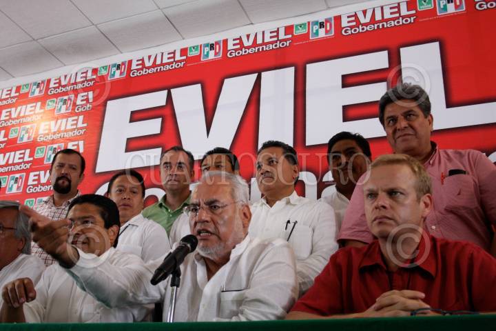 OAXACA, OAXACA, 04JULIO2010.- Senadores de la Republica encabezados por Carlos jimenez Chávez ofrecieron una conferencia de prensa en la casa campaña del candidato del PRI a la gubernatura, Eviel Perez Magaña, para rechazar el triunfo de Gabino Cue y declarar que esperaran hasta que el Instituto Electoral del Estado de Oaxaca de los numeros del PREP. FOTO: HUGO CRUZ/CUARTOSCURO.COM