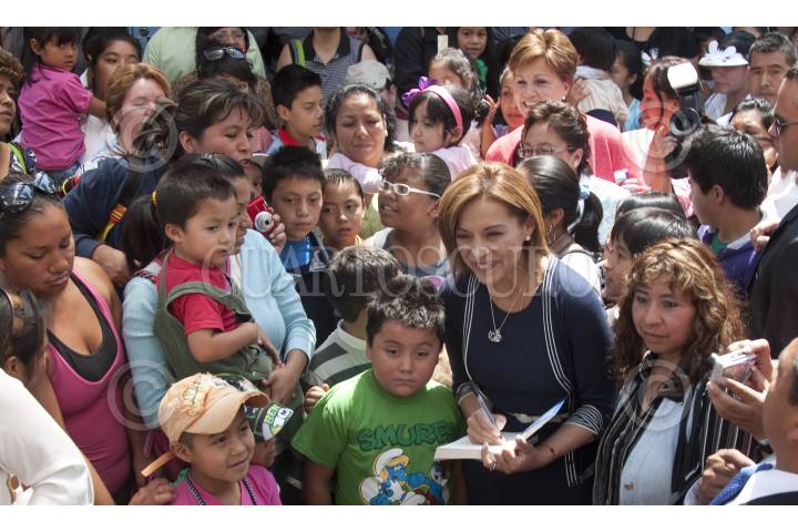 MÉXICO, D.F., 30ABRIL2012.- Josefina Vázquez Mota candidata del Partido Acción Nacional la Presidencia de la República, acudió al festival del día del Niño celebrado en el Hospital General de México donde también presento su libro de cuantos infantiles: "La mariposa Blanca y el pato Tulio". FOTO: NIMROD CRUCES /CUARTOSCURO.COM