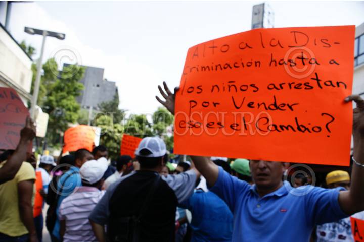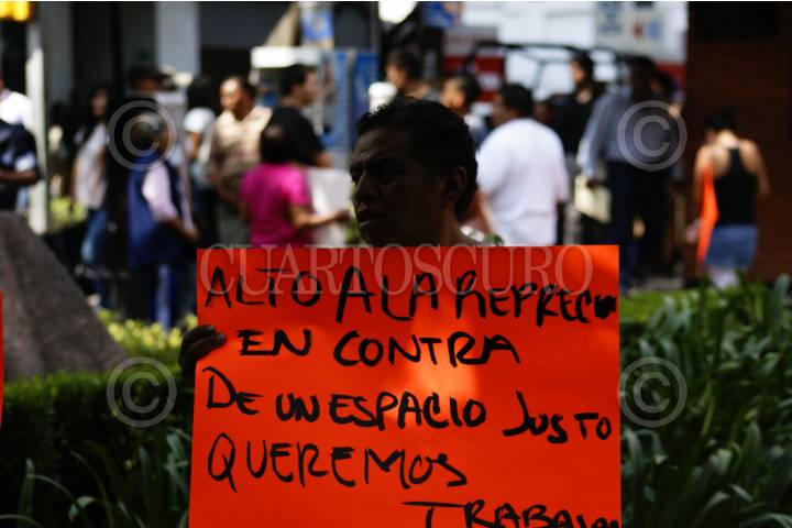 MÉXICO, D.F., 03MAYO2012.- Vendedores ambulantes de la Zona Rosa realizaron un mitin sobre la calle Genova para exigir un espacio de trabajo a la delegación, después de que las autoridades los retiraran del paso peatonal. FOTO: NIMROD CRUCES /CUARTOSCURO.COM