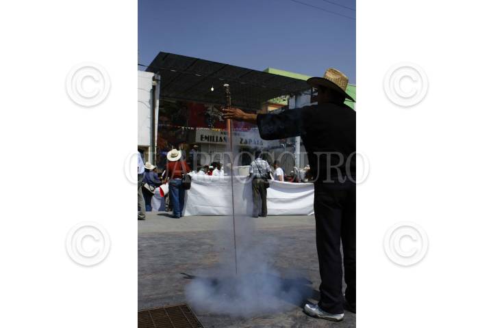 ATENCO, ESTADO DE MÉXICO, 04MAYO2012.- Pobladores de San Salvador Atenco en el Estado de México, recordaron al joven Alexis Holin a seis años de haber sido asesinado durante la repreción al Frente de Pueblos en Defensa de la Tierra por parte de la PFP. El dirigente Ignacio del Valle encabezo una marcha por el pueblo, un mitin sobre la carreta Texcoco-Lecheria y una ofrenda en el lugar donde callo herido el atenquense. FOTO:NIMROD CRUCES /CUARTOSCURO.COM