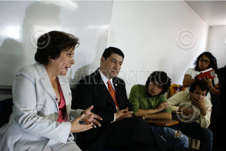 MÉXICO, D.F., 07MAYO2012.- Isabel Miranda de Wallace, candidata del PAN a la Jefatura de Gobierno del Distrito Federal; inicia su ponencia ante alumnos y académicos de la Universidad Latina, campus sur en la delegación Coyoacán, en el foro denominado Razona tu voto. La candidata acompañada del Lic. Ángel Elíseo Cano Gómez, rector y José Manuel Ramírez académico, propuso ante los estudiantes su estrategia de gobierno, quienes le cuestionaron sobre, empleo, transporte, educación y economía. FOTO: NIMROD CRUCES /CUARTOSCURO.COM