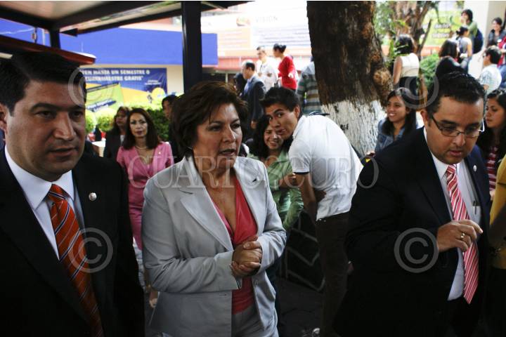 MÉXICO, D.F., 07MAYO2012.- Isabel Miranda de Wallace, candidata del PAN a la Jefatura de Gobierno del Distrito Federal; inicia su ponencia ante alumnos y académicos de la Universidad Latina, campus sur en la delegación Coyoacán, en el foro denominado Razona tu voto. La candidata acompañada del Lic. Elíseo Cano Gómez, rector propuso ante los estudiantes su estrategia de gobierno, quienes le cuestionaron sobre, empleo, transporte, educación y economía. FOTO: NIMROD CRUCES /CUARTOSCURO.COM