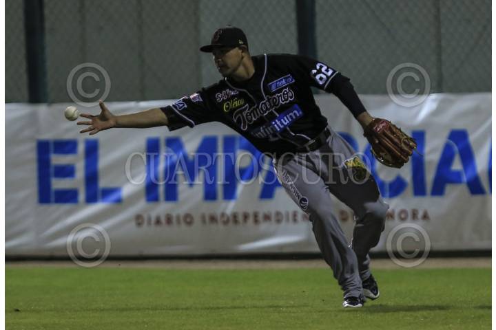 HERMOSILLO, SONORA, 27DICIEMBRE2015.- Christian Zazueta jardinero derecho de tomateros no puede controlar la bola , durante el tercer juego de la Serie entre Tomateros de Culiacán vs Naranjeros de Hermosillo en el Estadio Sonora. Segunda vuelta de la Liga Mexicana del Pacifico (LMP). FOTO: MARGARITA GARCÍA /CUARTOSCURO.COM