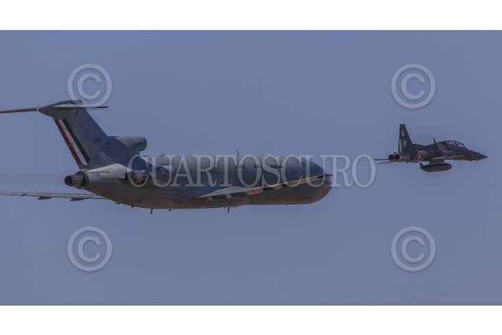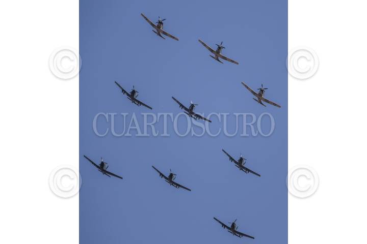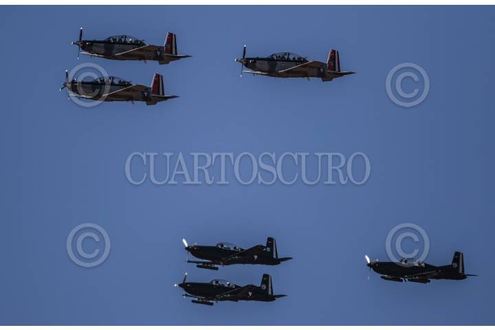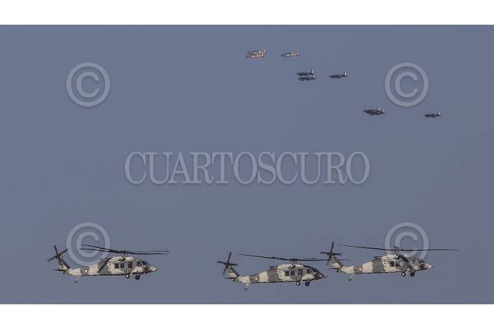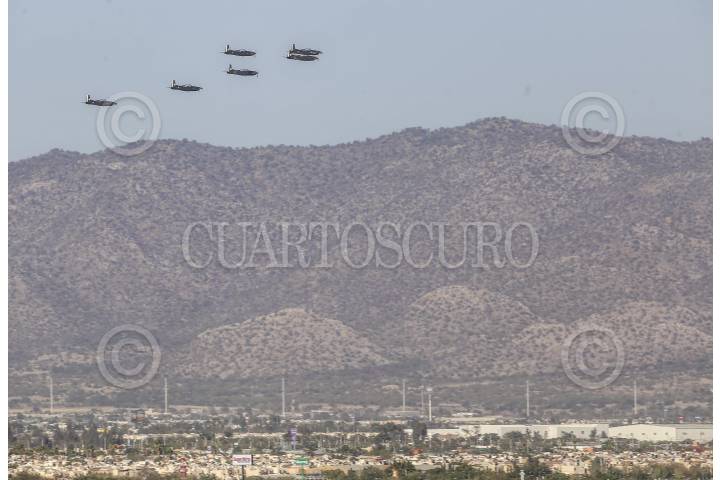 HERMOSILLO, SONORA, 10FEBRERO2016.- Aviones militares protagonizan un espectáculo aéreo por los festejos del 101 aniversario de la Fuerza Aérea Mexicana, celebrado en la Base Aérea Militar nº18, y los cuales fueron encabezados por el Jefe de Ejecutivo Enrique Peña Nieto. FOTO: MARGARITA GARCÍA /CUARTOSCURO.COM