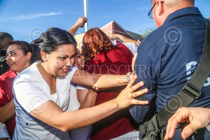 HERMOSILLO, SONORA, 25FEBRERO2016.- La policía municipal y estatal desalojó las vialidades del bulevar Rodríguez, tomado por los Médicos, paramédicos y enfermeras despedidos recientemente del hospital ISSTESON. FOTO: MARGARITA GARCÍA /CUARTOSCURO.COM