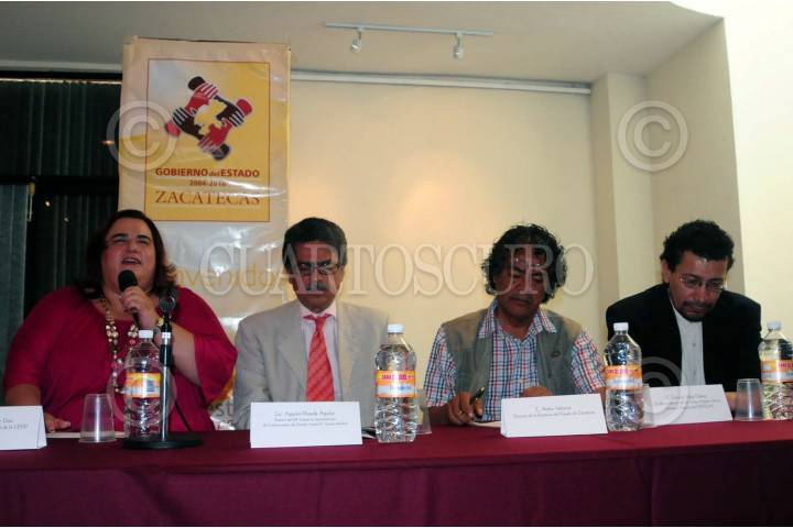 ZACATECAS, ZACATECAS, 07AGOSTO2009.- Lourdes Rodarte Díaz, directora de la CEISD (Comision estatal para la integracion social de las personas con discapacidad ), Agustín Pineda director del DIF estatal, Pedro Valtierra director de la Fototeca de Zacatecas y Gerardo Mata, en el núcleo de Cultura del ISSSTEZAC, se dió a conocer la convocatoria para el 2do Concurso estatal de fotografía ''La Familia como Núcleo Fundamental de la Inclusión''. FOTO: SERGIO MAYORGA/CUARTOSCURO.COM