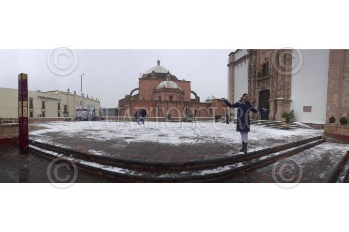 ZACATECAS, ZACATECAS, 27ENERO2016.- Esta mañana se registró una nevada que cubrió de blanco la ciudad y los cerros circundantes. Por este motivo se suspendieron las clases en varias escuelas de diferentes niveles educativos por lo que los estudiantes disfrutaron de este fenómeno poco común en la capital del estado. FOTO: SERGIO MAYORGA /CUARTOSCURO.COM