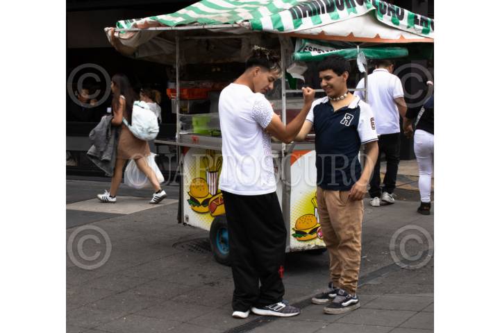 CIUDAD DE MÉXICO, 13SEPTIEMBRE2025.- Dos jóvenes miden sus fuerzas en calles del Centro Histórico. FOTO: CAMILA AYALA BENABIB/CUARTOSCURO.COM