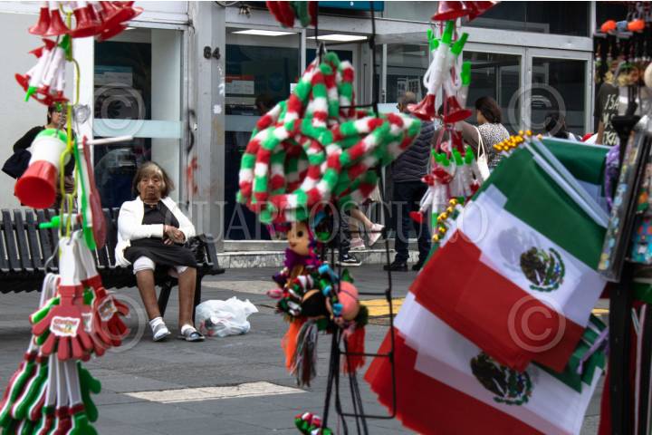 CIUDAD DE MÉXICO, 13SEPTIEMBRE.- A dos días del grito de independencia, vendedores continúan ofertando sus artículos en las calles del Centro Histórico. FOTO: CAMILA AYALA BENABIB/CUARTOSCURO.COM