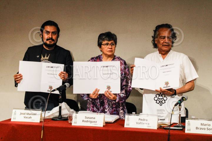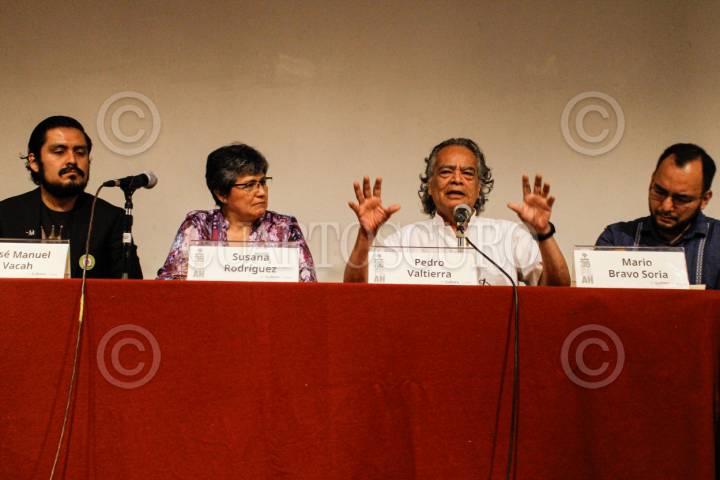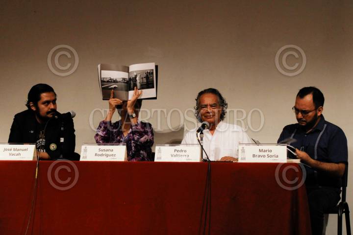 CIUDAD DE MÉXICO, 19SEPTIEMBRE2025.- El fotoperiodista y director de la Agencia Cuartoscuro, Pedro Valtierra, presentó, en el Museo Nacional de Antropología, su libro "Sin Miedo a la Luz". En el evento estuvieron presentes también la historiadora Susana Rodríguez, el periodista Mario Bravo y el poeta y periodista cultural José Manuel Vacah. FOTO: CAMILA AYALA BENABIB/CUARTOSCURO.COM