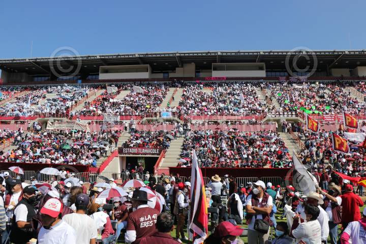 Lorena Cuéllar Cisneros, candidata a la gubernatura de Tlaxcala por la coalición "Juntos Haremos Historia", cerró su campaña en el estadio Tlahuicole.
