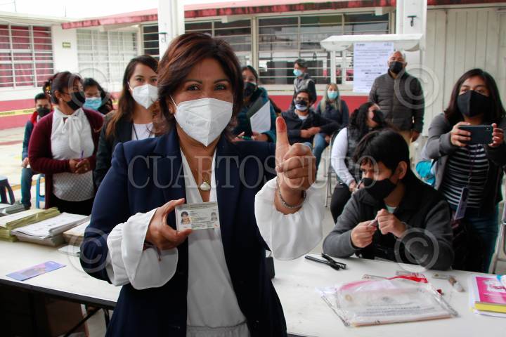 Anabell Ávalos Zempoalteca, candidata de la coalición "Unidos por Tlaxcala", emitió su voto en donde llamó a los tlaxcaltecas a votar.