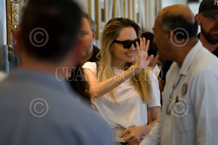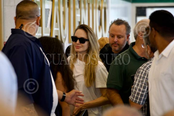 BOCA DEL RÍO, VERACRUZ, 18JULIO2025.- Las actriz estadounidense de Hollywood Angelina Jolie, visitó esta mañana en el Gran café de la Parroquia en el puerto de Veracruz. El miércoles 16 por la noche arribaron al aeropuerto de Veracruz y se les ha visto en compañía de la Secretaria de Cultura realizando scouting en algunos municipios del estado. FOTO: VICTORIA RAZO/CUARTOSCURO.COM