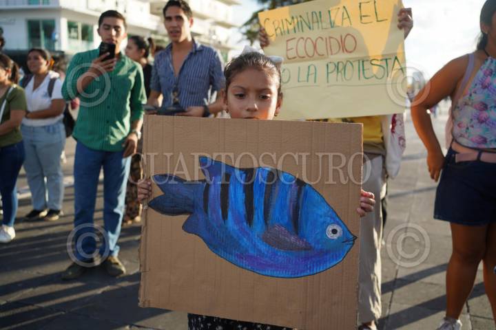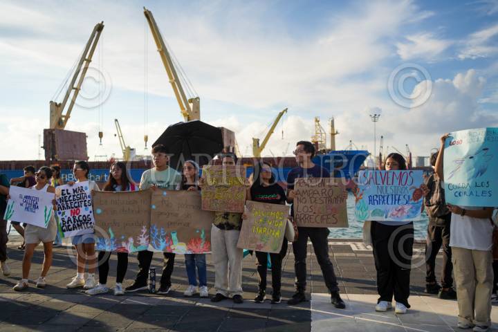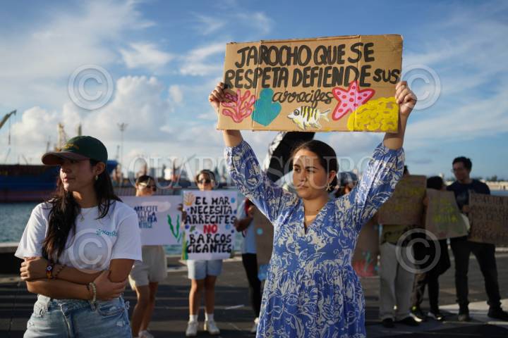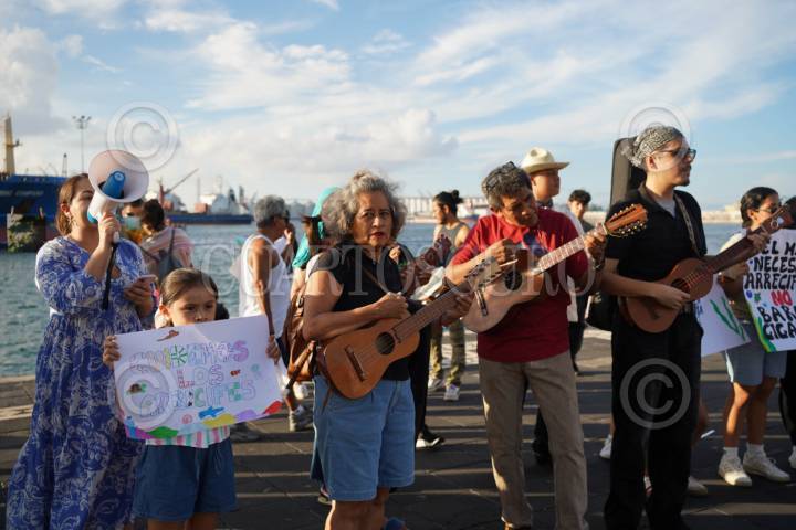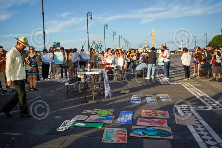 VERACRUZ, VERACRUZ, 14SEPTIEMBRE2025.- Un grupo de jóvenes entre ellos biólogos marinos, se manifestaron esta tarde en el malecón de la ciudad para exigir un alto al proyecto de la ampliación del Puerto, donde se pondrá una gran escollera de 3 Km sobre el arrecife La Gallega. Los manifestantes recaudan firmas para detener el proyecto en Veracruz, ya que afectaría su ecosistema arrecifal. FOTO: VICTORIA RAZO/CUARTOSCURO.COM
