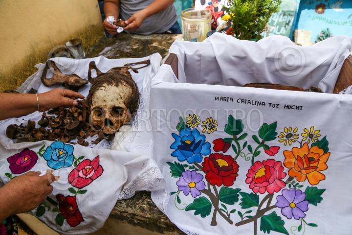 Una semana antes del 1 de noviembre, las familias comienzan a acudir al camposanto del pueblo para visitar a sus difuntos e iniciar este tradicional ritual, mejor conocido como el “lavado de huesos”. El color de las osamentas marca el tiempo de degradación de estos mismos, el blanqueamiento de los huesos indica mayor tiempo de antigüedad, mientras que el color café oscuro indica menor tiempo de haber fallecido la persona. Por esta razón, la limpieza de los restos áridos, son tratados de forma distinta; una brocha sirve de herramienta para los huesos más jóvenes, mientras que los de mayor tiempo de degradación, a punto de desintegrarse, tienen que tratarse con mayor delicadeza, es decir, directamente con las manos de los propios familiares o el sepulturero.