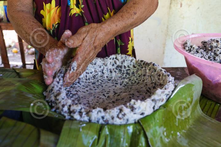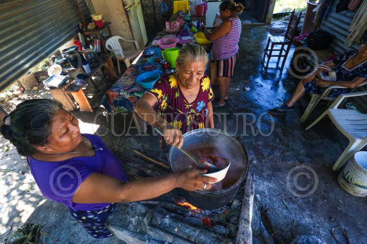 Desde hace 40 años, la familia Mijangos Balan del realiza los pibipollos en honor a las ánimas que han partido como parte de la tradición del Hanal Pixan. De acuerdo con la inculturación del pensamiento maya y el español, el ‘pib’ es un símbolo de la muerte y la resurrección. Doña Ermenegilda Balan Canché, matriarca de la familia, da indicaciones a sus hijas para que todo quede tal y como a ella le enseñaron sus papás.