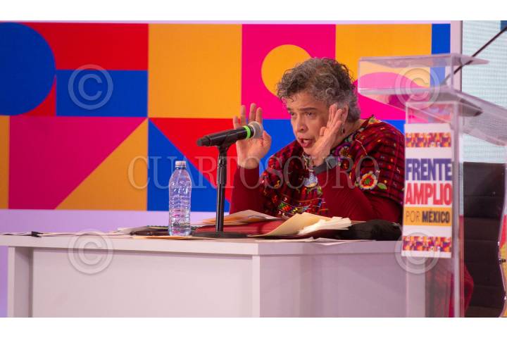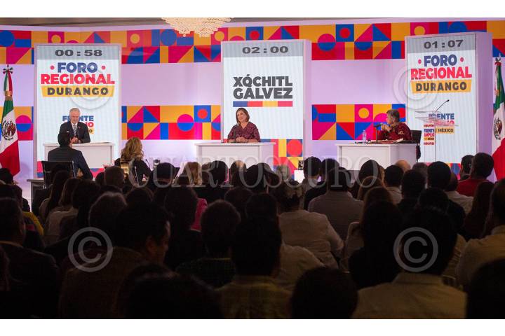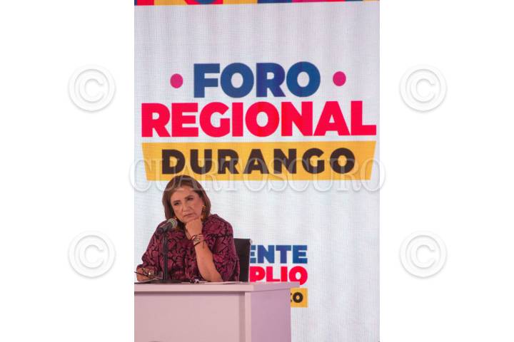 Xóchitl Gálvez durante su participación en el primer foro de diálogo denominado “Vivir en México y ejercer derechos” en Durango.