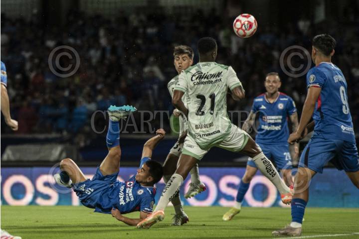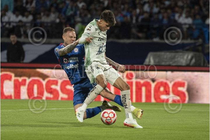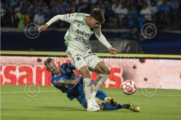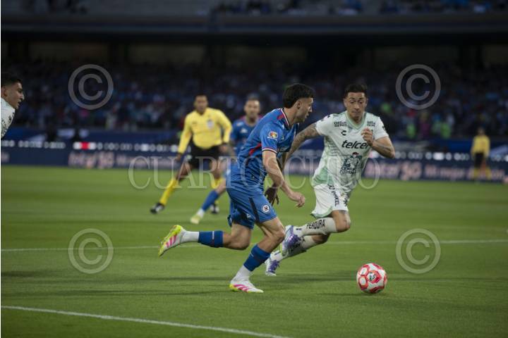 CIUDAD DE MÉXICO, 26JULIO2025.- Los equipos de la Máquina Celeste del Cruz Azul y el León se enfrentan en la jornada 3 del torneo Apertura 2025. Al medio tiempo el partido va cero a cero. FOTO: PEDRO ANZA /CUARTOSCURO.COM