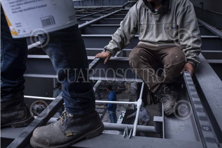 CIUDAD DE MÉXICO, 28JULIO2025.- Trabajadores de la construcción trabajan en la remodelación y edificación de un inmueble en la colonia Roma. FOTO: PEDRO ANZA /CUARTOSCURO.COM