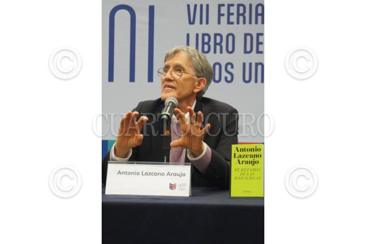 CIUDAD DE MÉXICO, 28AGOSTO2025.- Antonio Araujo, miembro del Colegio Nacional, presentó su libro "El Retablo de las Maravillas", en el marco de la Feria Internacional del Libro Universitario (FILUNI). El miembro de El Colegio Nacional, en compañía del biólogo, escritor y divulgador de la ciencia Andrés Cota Hiriart; y de Alejandro Cruz Atienza, director editorial de la institución, destacó que la CONABIO vinculó la defensa del medio ambiente con la vida cotidiana: qué comemos, qué biodiversidad observamos e, incluso, qué olemos. FOTO: CORTESÍA COLEGIO NACIONAL/CUARTOSCURO.COM