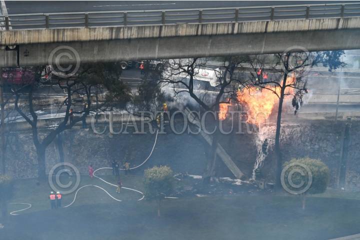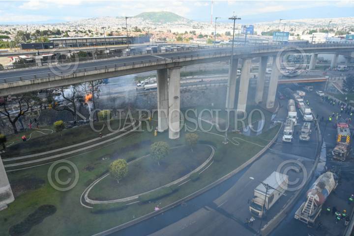 CIUDAD DE MÉXICO, 10SEPTIEMBRE2025.- Derivado de la volcadura de una pipa en el Puente de la Concordia, alcaldía Iztapalapa, se registró una explosión en la zona que provocó que varios vehículos quedarán calcinados, con saldo de 18 personas con severas quemaduras. FOTO: AGENCIA CUARTOSCURO.COM