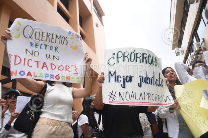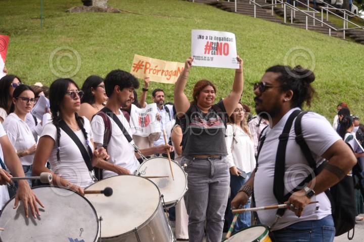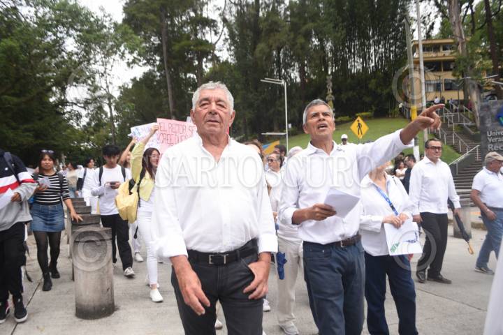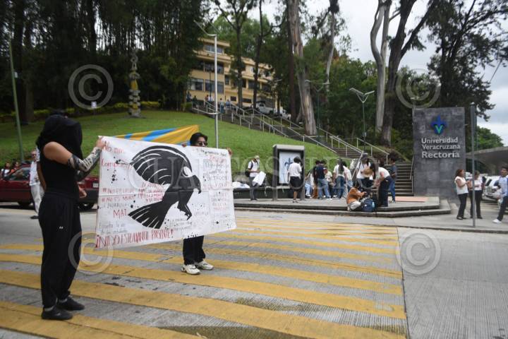 XALAPA, VERACRUZ, 01SEPTIEMBRE2025.- Estudiantes y ex rectores protestaron frente al edificio de Rectoría en rechazó a la prórroga a Martín Aguilar Sánchez para continuar dirigiendo la Universidad Veracruzana. Los inconformes bloquearon calles aledañas al campus. FOTO: YERANIA ROLÓN/CUARTOSCURO.COM