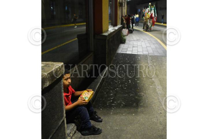 XALAPA, VERACRUZ, 15SEPTIEMBRE2025.- Cerca del sitio de los festejos patrios, un niño vende dulces. FOTO: YERANIA ROLÓN/CUARTOSCURO.COM
