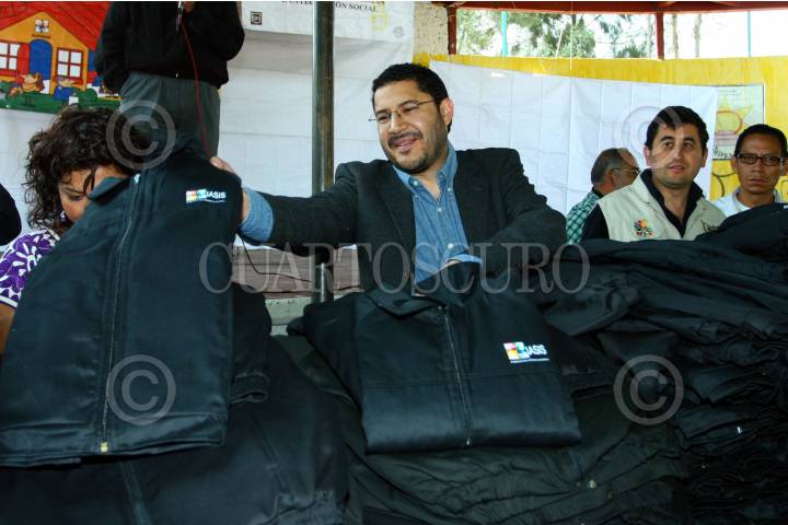 MÉXICO, D.F. 13ENERO2007.- El secretario de desarrollo social, Martí Batres entregó chamarras a habitantes de San Miguel Teotongo, en Iztapalapa, como parte de el programa En frío invierno, calor humano. FOTO: PAOLA HIDALGO/CUARTOSCURO.COM