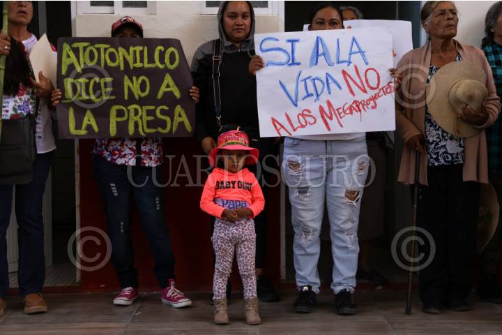 JIMENEZ DEL TEÚL, ZACATECAS.- Pobladores, mujeres, niños, campesinos y ejidatarios de diferentes comunidades de la región marcharon por las calles principales de la cabecera municipal para demandar y expresar su rechazo al proyecto de la “Presa Milpillas” impulsado desde el gobierno federal y estatal como parte de los proyectos que forman parte del Plan Hídrico Nacional. FOTO: ADOLFO VLADIMIR /CUARTOSCURO.COM