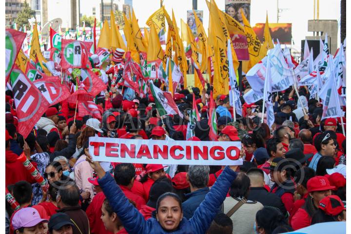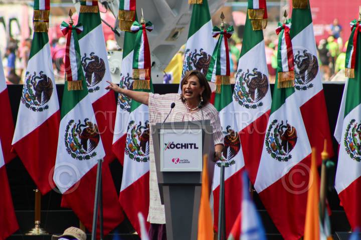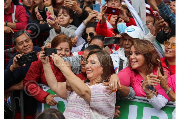 CIUDAD DE MÉXICO, 12NOVIEMBRE2023.- Xóchitl Gálvez, aspirante a la presidencia por el Frente Amplio por México (PAN, PRI, PRD), realizó un informe con simpatizantes a un costado del Monumento a la Revolución. FOTO: DENISSE HERNÁNDEZ/CUARTOSCURO.COM