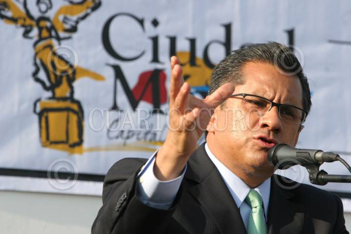 MEXICO, D.F. 26MARZO2007.- Marcelo Ebrard, jefe de gobierno de la ciudad de México durante su intervención en la ceremonia de abanderamiento de la Unidad de Protección Ciudadana de Balbuena, en la delegación Venustiano Carranza. FOTO: NELLY SALAS/CUARTOSCURO.COM