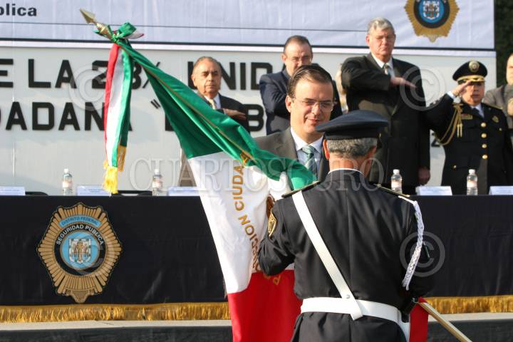 MEXICO, D.F. 26MARZO2007.- Marcelo Ebrard, jefe de gobierno de la ciudad de México abandero a la Unidad de Protección Ciudadana de Balbuena, en la delegación Venustiano Carranza. FOTO: NELLY SALAS/CUARTOSCURO.COM