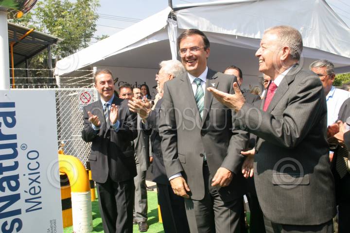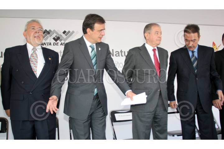 MEXICO, D.F. 26MARZO2007.- Marcelo Ebrard, jefe de gobierno del D.F. y Salvador Gabarro, director de Gas natural durante la ceremonia de converción de la planta de asfalto a gas natural. FOTO: NELLY SALAS/CUARTOSCURO.COM