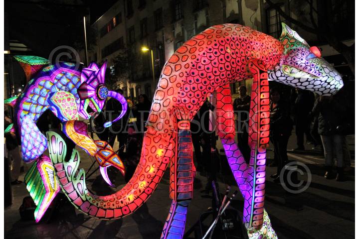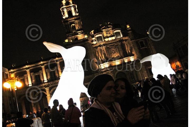 CIUDAD DE MÉXICO, 11NOVIEMBRE2016.- El Festival Internacional de las Luces “Filux” cumplió su segunda jornada de luces en el primer cuadro de la capital. El festival, en donde las esculturas luminosas, mapeos digitales y alebrijes de colores conforman la muestra, esa abierto al público de manera gratuita del 10 al 13 de noviembre en un horario de 18:00 a 23:00 horas. FOTO: MARÍA JOSÉ MARTÍNEZ /CUARTOSCURO.COM