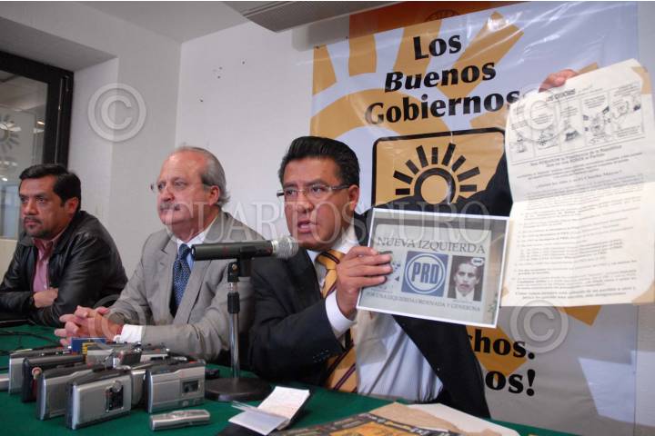 MÉXICO, D.F., 26FEBRERO2008.- Rafael Hernández, Graco Ramirez Abreu y Horacio Duarte, candidato a la Secretaría General del PRD Naciona,l presentaron diversas pruebas impresas y sonoras sobre irregularidades de la campaña de Alejandro Encinas. FOTO: GERMÁN ROMERO/CUARTOSCURO.COM