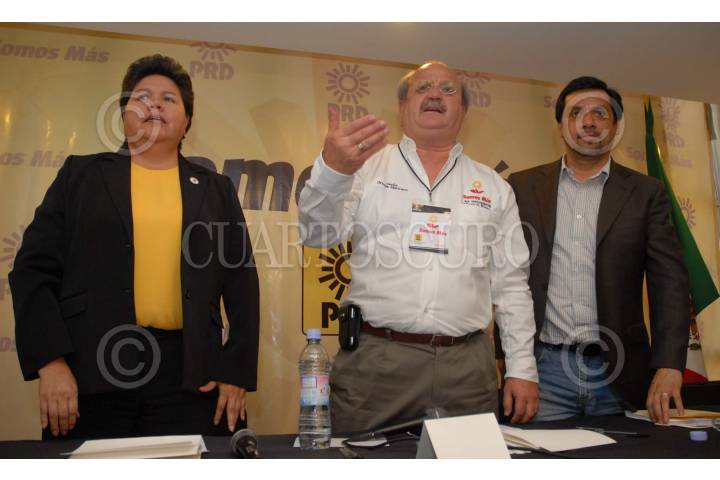 MEXICO, D.F., 16MARZO2008.- Martha Dalia Gastelum, Graco Ramirez Abreu y Rafael Hernández, representantes de la campaña del candidato Jesús Ortega, ofrecierón una conferencia de prensa, para señalar que la elección es valida ya que se instalaron un 93% de las casillas. FOTO: GERMÁN ROMERO/CUARTOSCURO.COM