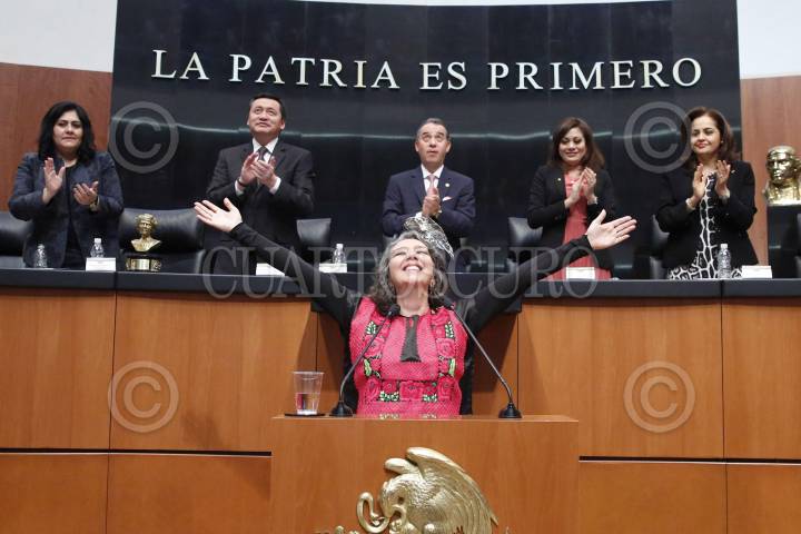 MÉXICO, D.F., 06MARZO2014.- El Senado de la República entregó en la Sesión Solemne, el reconocimiento “Elvia Carrillo Puerto”, a la ciudadana María Marcela Lagarde y De los Ríos, por su sobresaliente contribución al empoderamiento de las mujeres mexicanas y al reconocimiento de sus derechos humanos, en aras de alcanzar la igualdad sustantiva. FOTO: GERMÁN ROMERO /CUARTOSCURO.COM