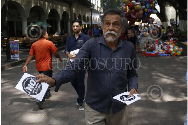 OAXACA, OAXACA, 05SEPTIEMBRE2019.- Francisco Benjamín López Toledo mejor conocido como “Francisco Toledo” falleció la noche de este viernes en la capital de Oaxaca a los 79 años de edad. El artista plástico mexicano quien también tenía una destacada labor como activista de izquierda, luchador social ambientalista, promotor cultural y filántropo. Fueron sus familiares quienes confirmaron el deceso del artista oaxaqueño, en tanto el Gobernador del Estado, Alejandro Murat Hinojosa confirmo a través de un twitter la noticia. En imagen de archivo del 13 de septiembre de 2015, el pintor juchiteco repartiendo volantes y folletos que se oponían a la construcción de un Centro Cultural y de Convenciones en el Cerro del Fortín. FOTO: ARTURO PÉREZ ALFONSO /CUARTOSCURO.COM
