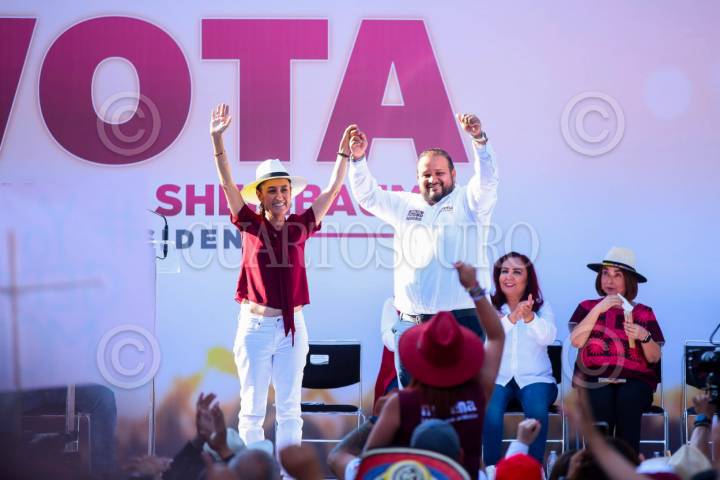 SAN FRANCISCO DEL RINCÓN, GUANAJUATO, 03MAYO2024.- Claudia Sheinbaum, candidata a la presidencia de la República por la coalición “Sigamos Haciendo Historia” (Morena-PT-PVEM), encabezó una reunión con simpatizantes de la entidad como parte de su gira previo a las elecciones. FOTO: JORGE ORTEGA/CUARTOSCURO.COM