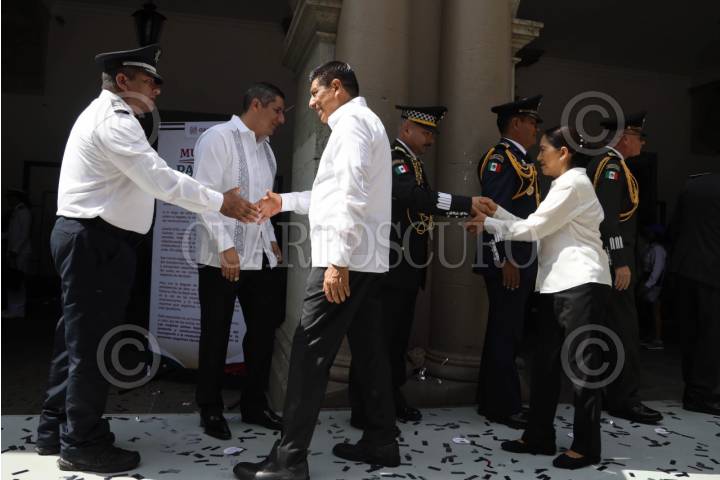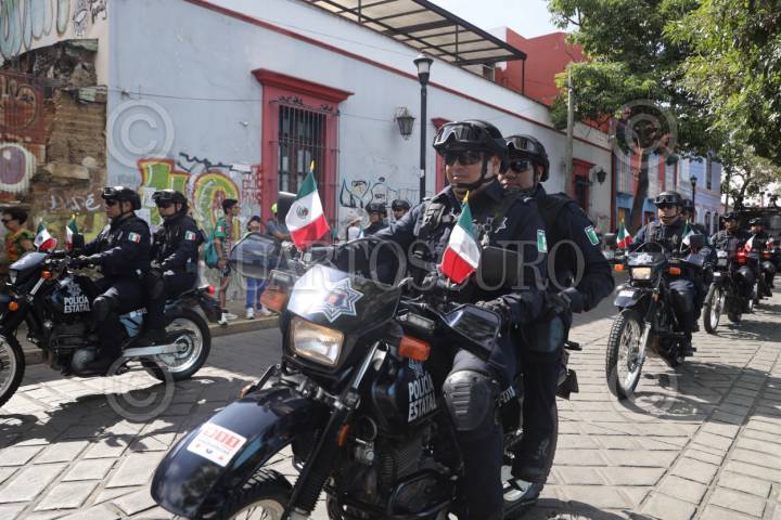 OAXACA DE JUÁREZ, OAXACA, 16SEPTIEMBRE2025.- Corporaciones de seguridad pública, instituciones educativas, asociaciones de charrería y cuerpos de auxilio participaron en el desfile cívico - militar conmemorativo por el 215 aniversario del inicio de la Lucha por la Independencia de México en la capital de Oaxaca. Durante este acto, presidido por el gobernador del estado, Salomón Jara Cruz, se reportó saldo blanco. FOTO: CAROLINA JIMÉNEZ/CUARTOSCURO.COM