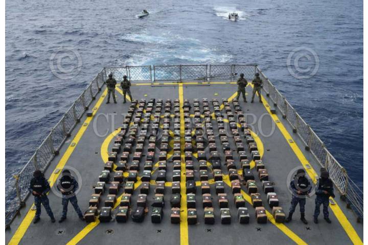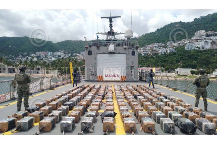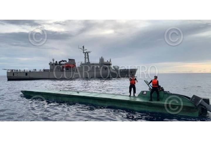 COSTAS DE GUERRERO, GUERRERO, 27JUNIO2025.- En una operación marítima encabezada por elementos de la Secretaría de Marina (Semar) a través de la Armada de México en funciones de Guardia Costera, en coordinación con la Fiscalía General de la República (FGR), Secretaría de la Defensa Nacional (Defensa), Guardia Nacional (GN) y Secretaría de Seguridad y Protección Ciudadana (SSPC), personal naval localizaron y aseguraron una embarcación tipo semisumergible o de bajo perfil, con tres tripulantes en su interior y 180 bultos con un peso aproximado de 3.5 toneladas de presunta cocaína. La carga y embarcación ilícita fueron aseguradas y el personal detenido puestos a disposición del agente del Ministerio Público en la FGR, quien definirá su situación legal. FOTO: SECRETARÍA DE MARINA/CUARTOSCURO.COM