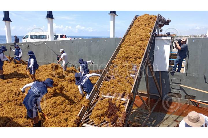 CANCÚN, QUINTANA ROO, 13JULIO2025.- La Secretaría de Marina informó que continúa redoblando esfuerzos de manera coordinada a la Estrategia de Atención al Sargazo 2025 en el litoral del Estado de Quintana Roo, con el objetivo de mitigar los efectos negativos de esta alga marina en el medio ambiente, la actividad turística y la sociedad. Esta estrategia se desarrolla en estrecha colaboración con los tres órdenes de gobierno, así como con el sector hotelero y la iniciativa privada. FOTO: SEMAR/CUARTOSCURO.COM
